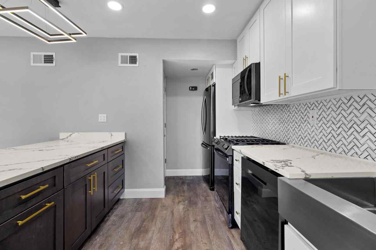 Pull-outs and soft-close drawers improve convenience.