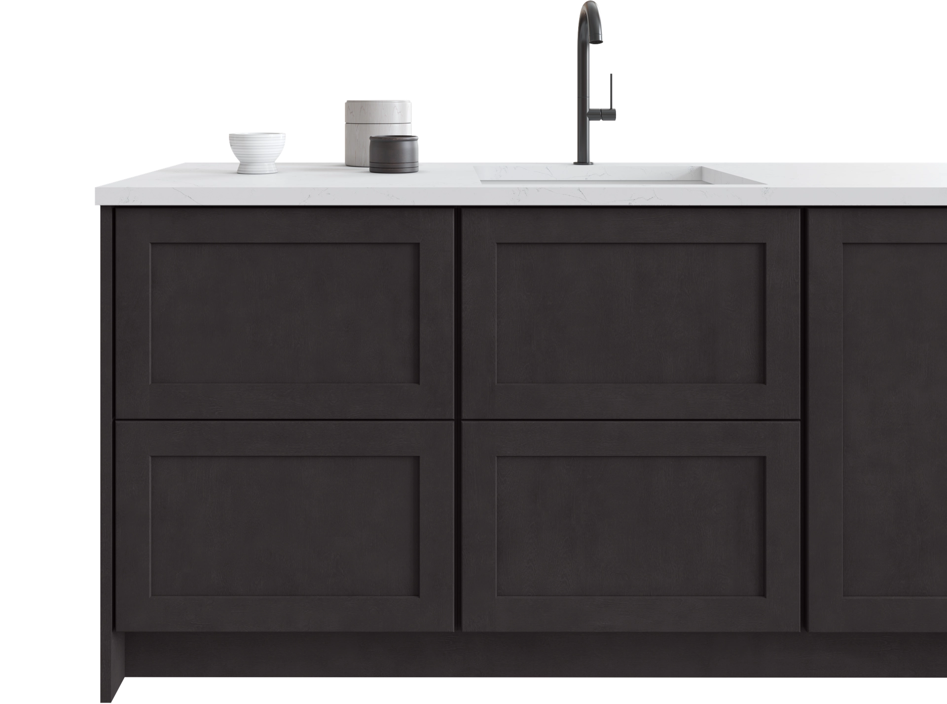 Allure doors feature classic solid wood stiles and rails with an MDF center panel designed to enhance stability and minimize movement. Concealed soft-close hinges ensure precise alignment and controlled closing.