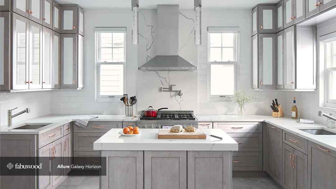 Horizon’s adaptable gray stain, accented with soft pink undertones, seamlessly complements Galaxy’s timeless design, creating a dynamic, sophisticated aura in your home.