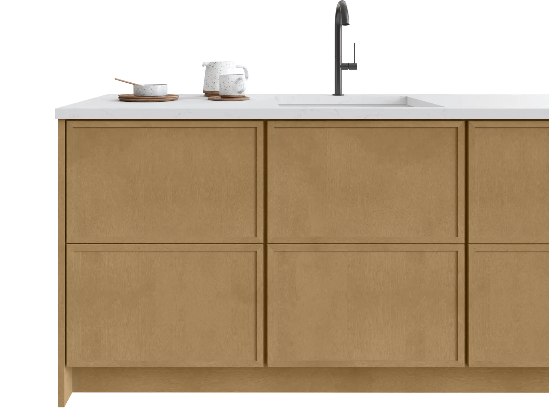 Allure doors feature classic solid wood stiles and rails with an MDF center panel designed to enhance stability and minimize movement. Concealed soft-close hinges ensure precise alignment and controlled closing.